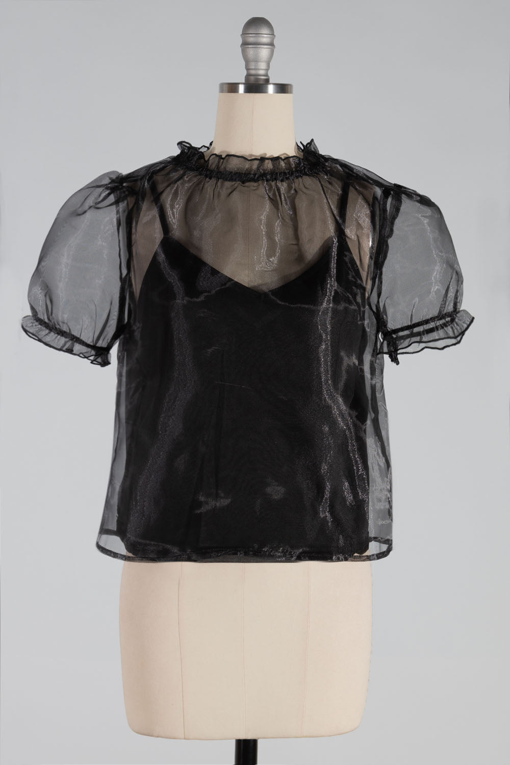 FST1747-6STK Short Sleeve Mock Neck Tule Top 6PK