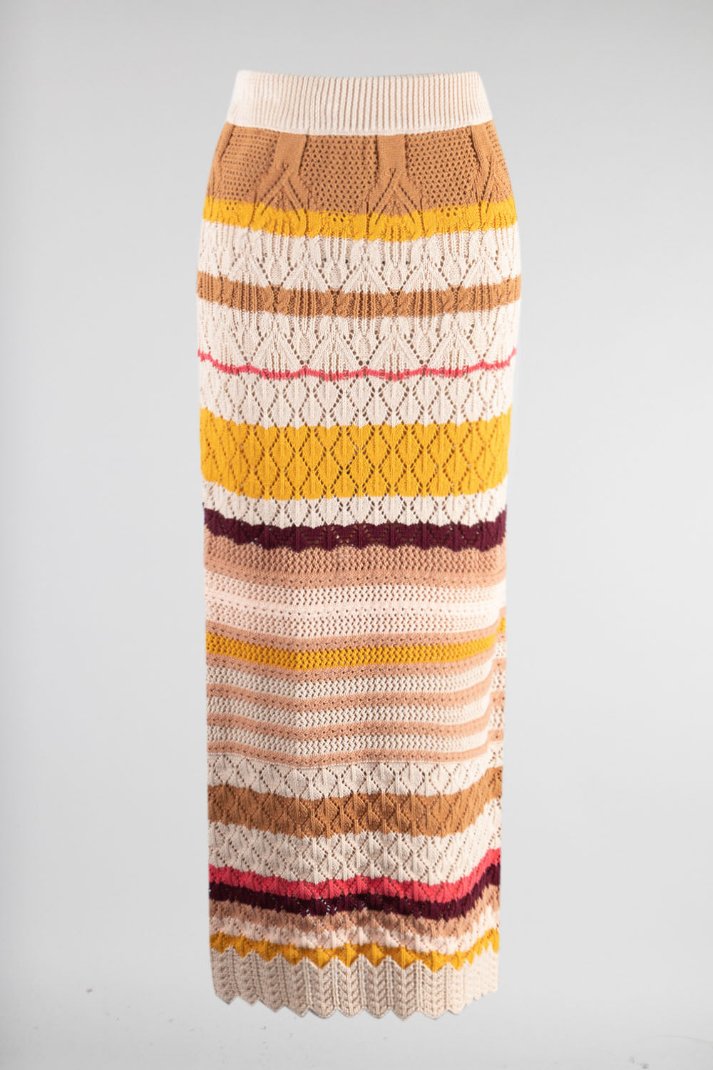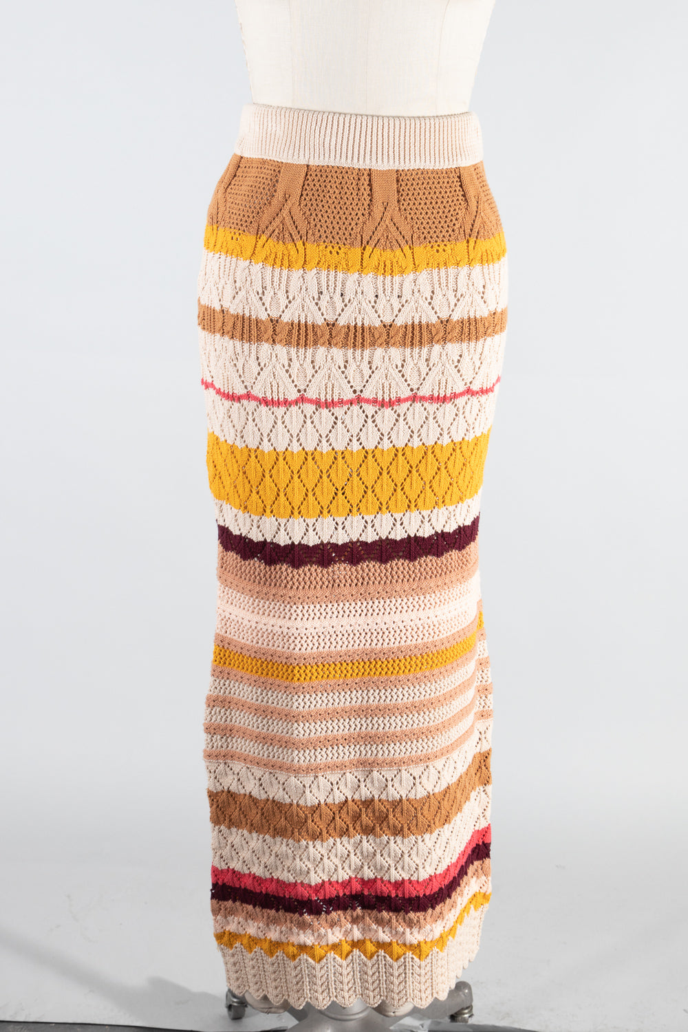 FSK2883-STK High Waist Striped Crochet Maxi Skirt 6PK