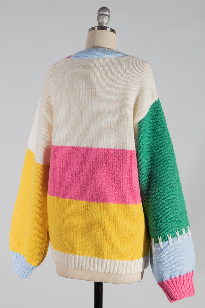 FST4707-01-STK Long Sleeve Color Block Sweater 6PK