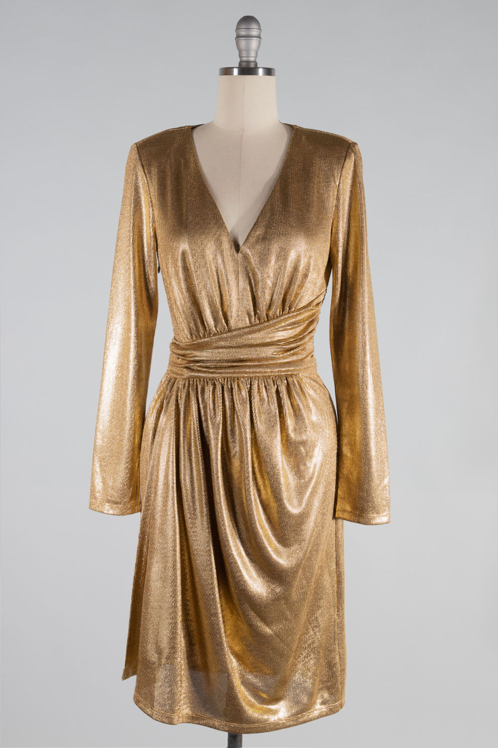 FSD19568-STK Long Sleeve V Neck Draped Dress 6PK