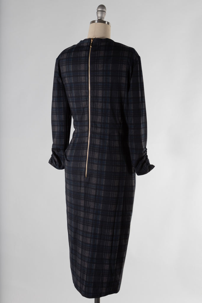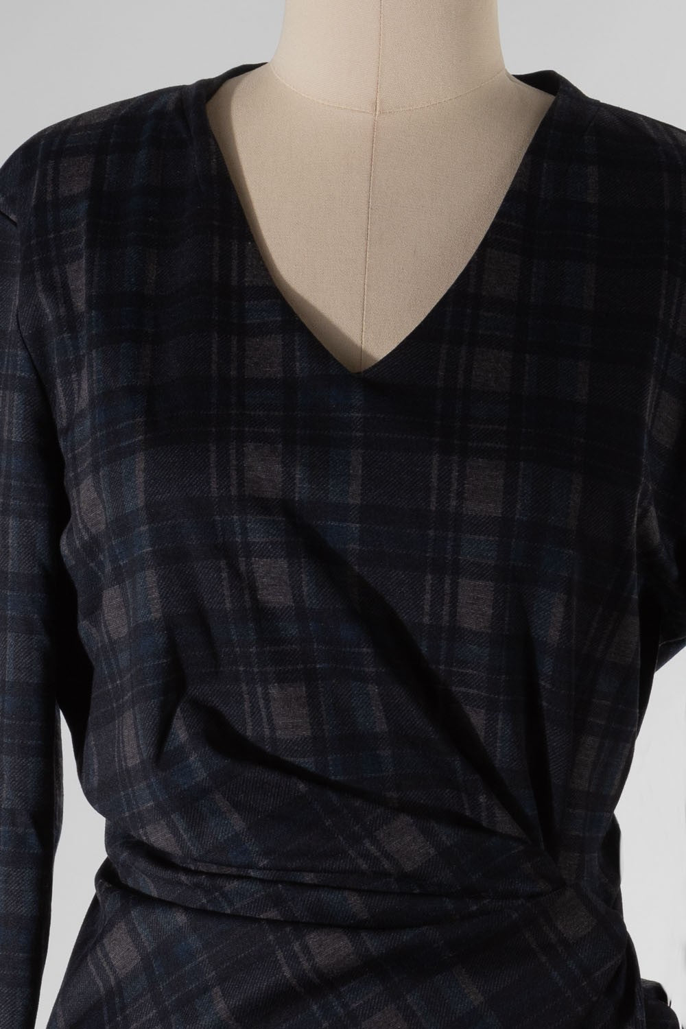 FSD625-STK Long Sleeve Plaid V Neck Dress 7PK