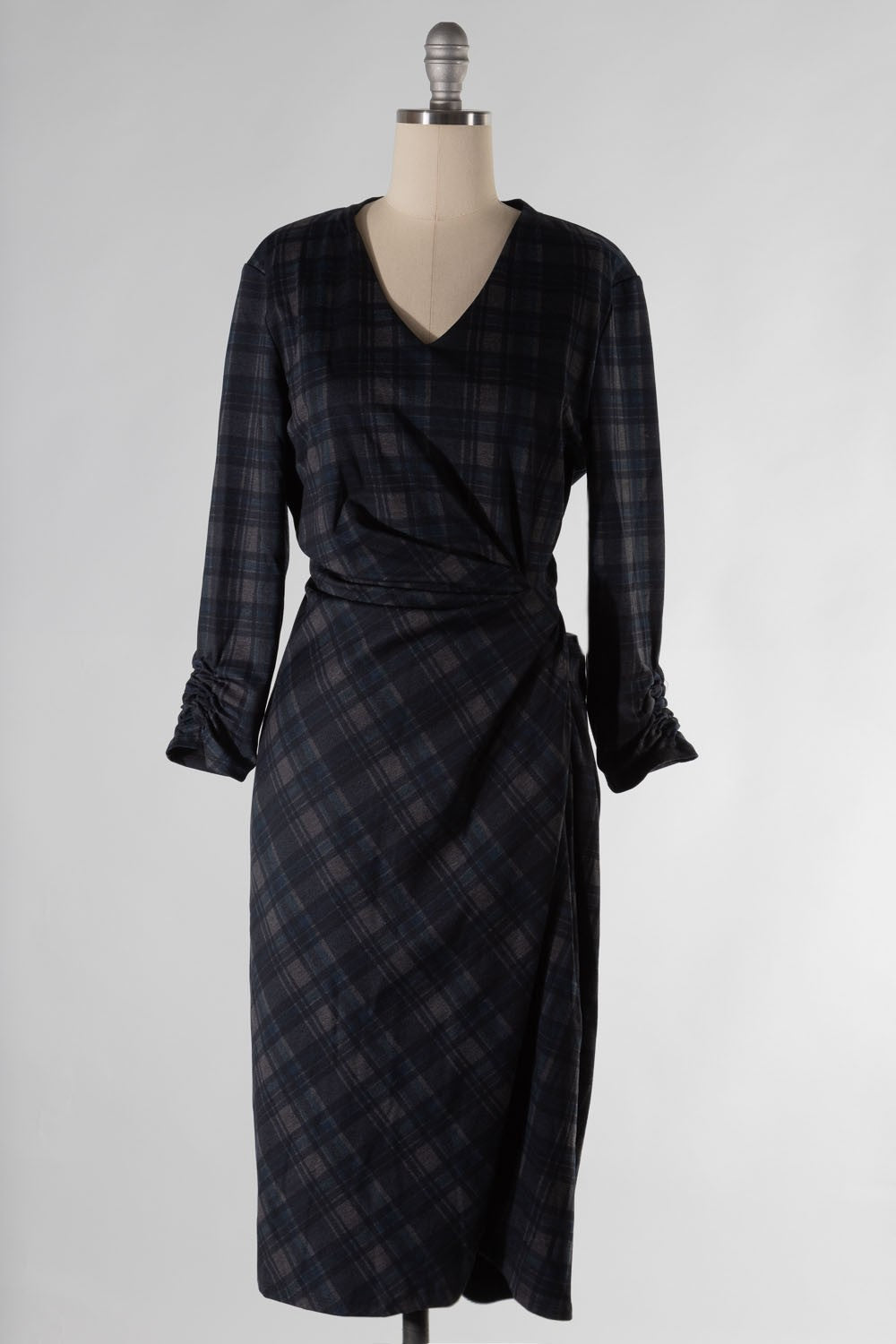 FSD625-STK-PLUS Long Sleeve Plaid V Neck Dress 7PK