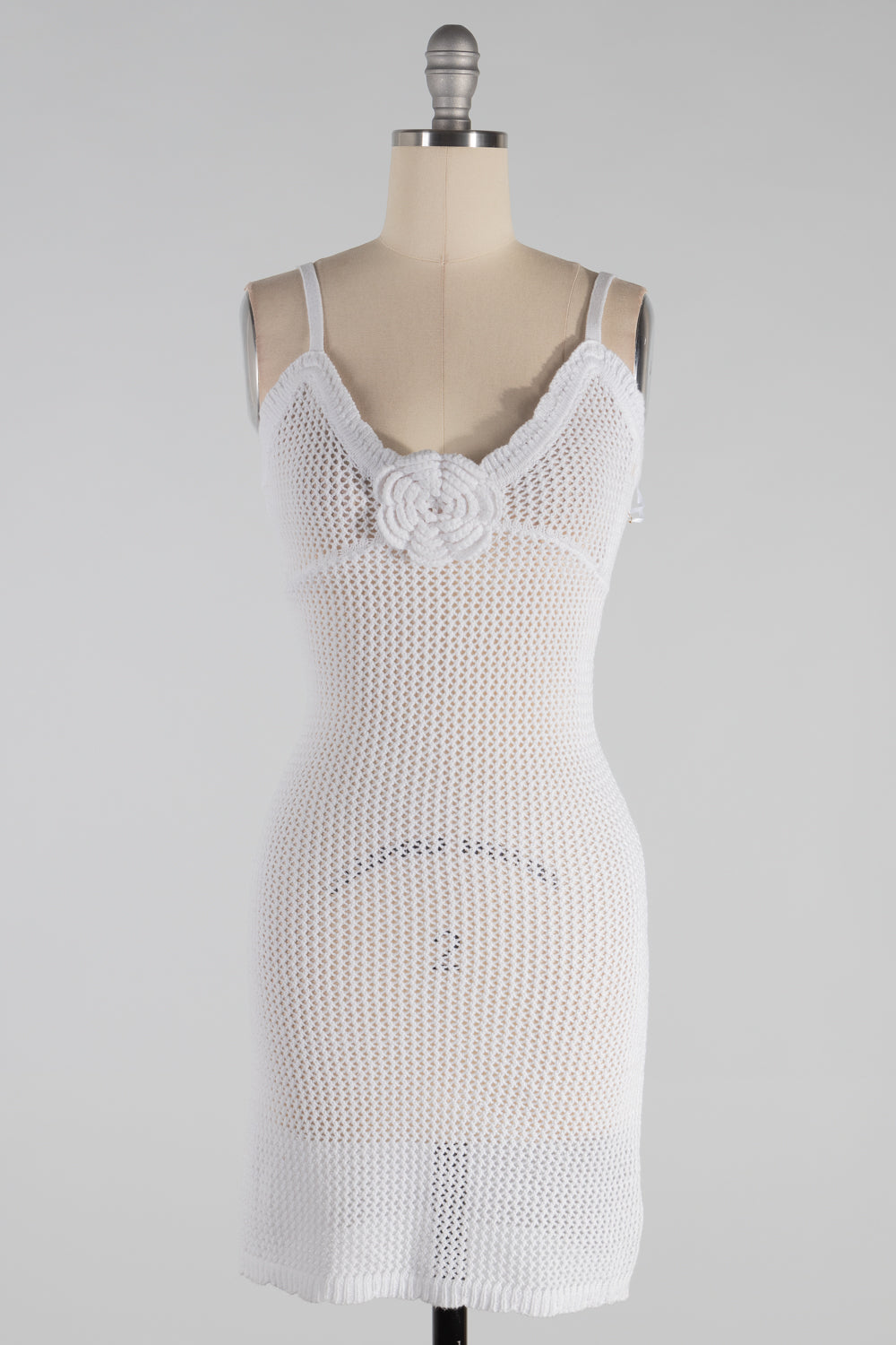 FSD28928-STK Crochet Rosette Sweater Mini Dress 6PK