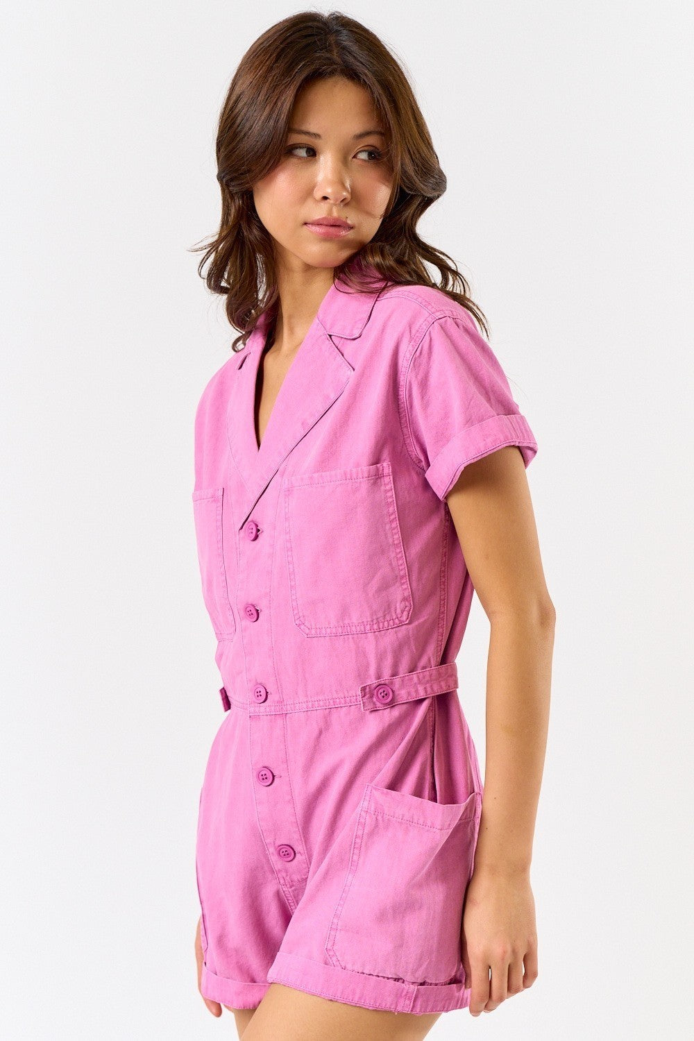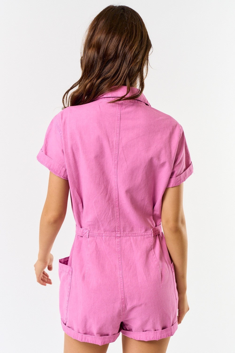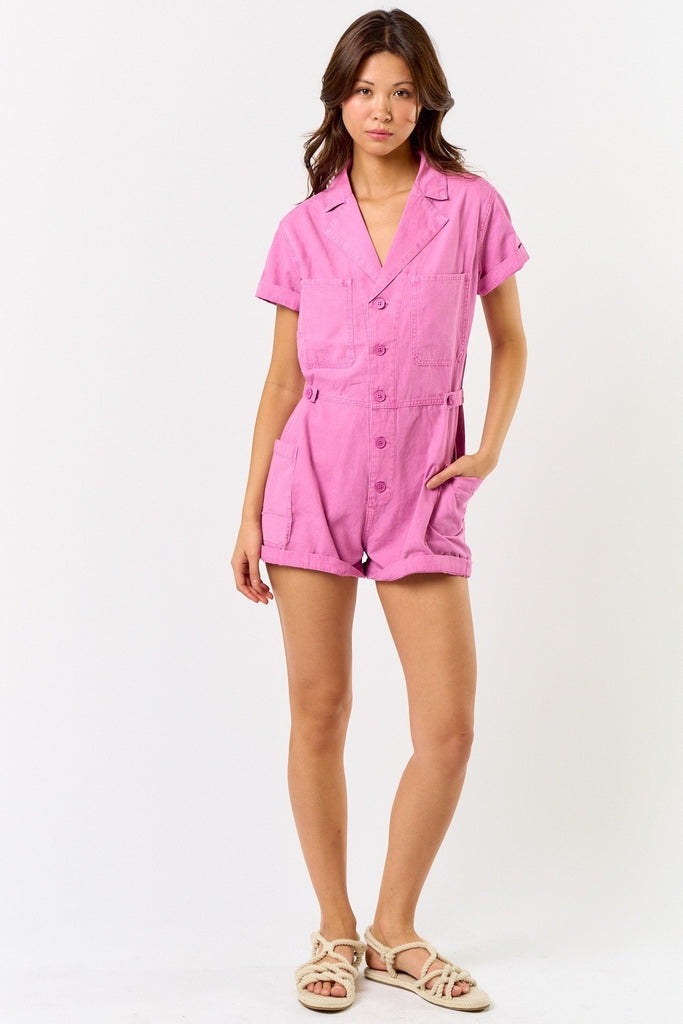FSR26152-STK Short Sleeve Front Pockets Collared Romper 6PK
