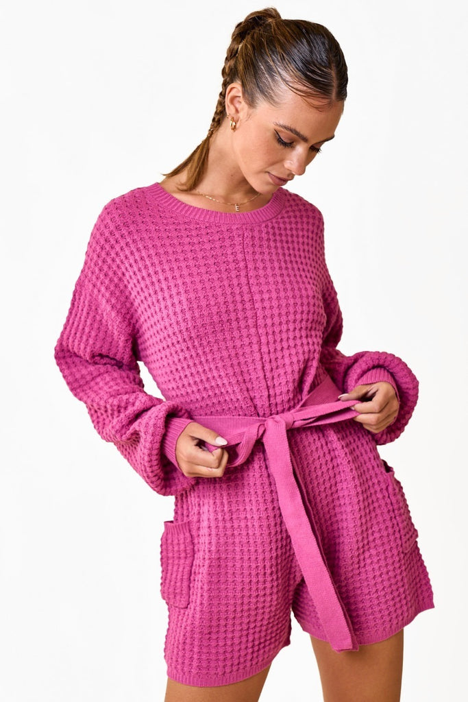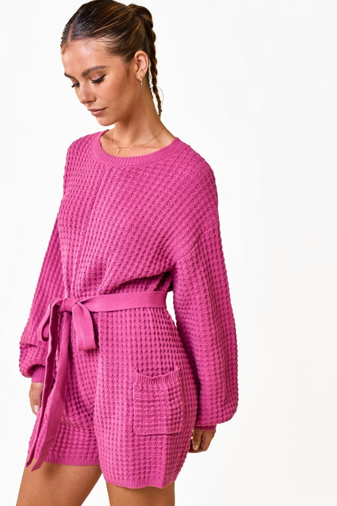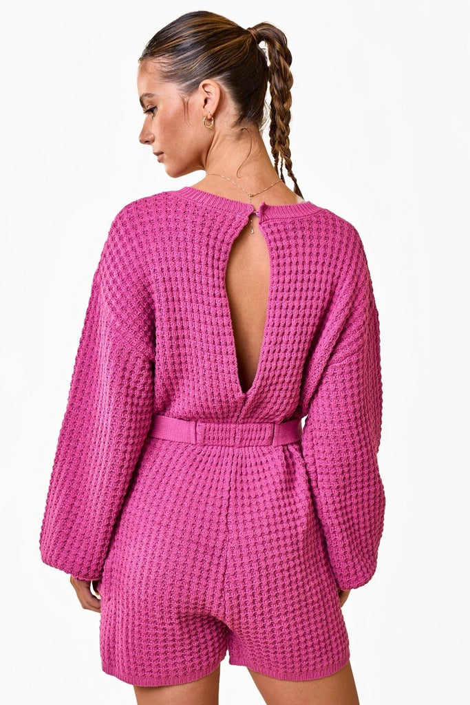 FSR29856-STK Long Sleeve Round Neck Crochet Romper 6PK